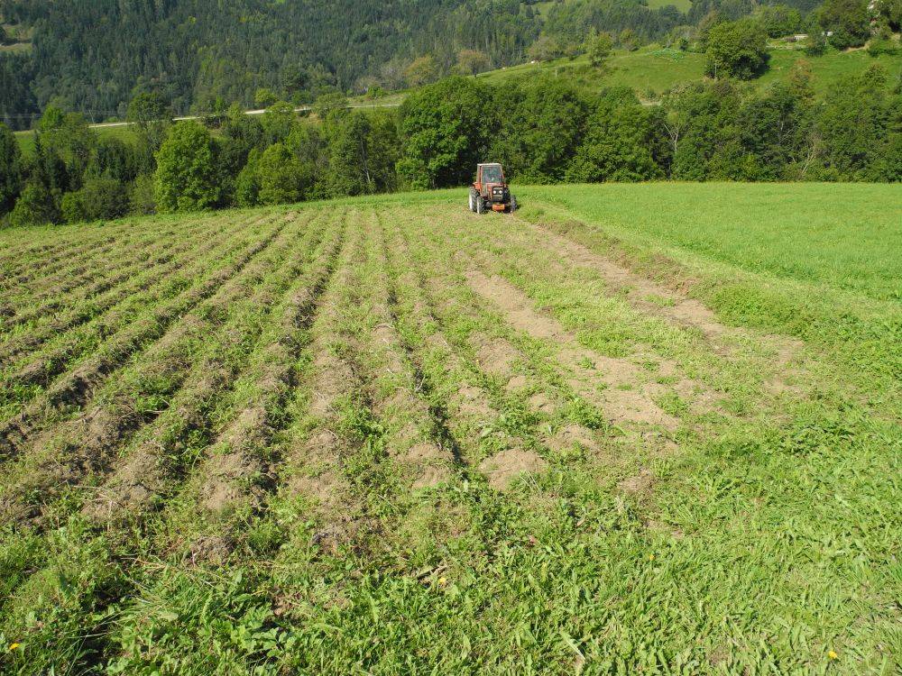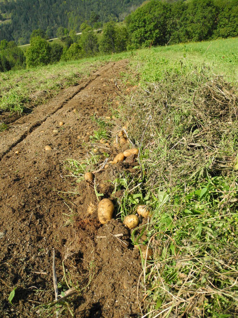 In the fields, which cover the steep slopes, potatoes as well as rye and spelt are grown. We use the harvested grain to make our own bread.