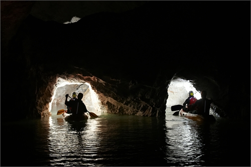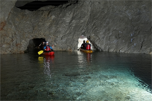 Pot podzemne avanture se prične pred rudarskim muzejem na Glančniku v Mežici. Tam se boste vkrcali na pravi rudarski vlak in se peljali po 3,5 km dolgem rovu do Unionskega vpadnika. Nato boste morali pešačiti 95 višinskih metrov navzdol po stopnicah do nivoja vode. Pred vstopom v rov zalit z vodo boste dobili potrebno zaščitno opremo ( škornje-hlače iz neoprena, nepotopljiv jopič, jamarsko čelado s svetilko). Tu vas bodo čakali posebni kajaki za dve do tri osebe. Z vodnikom boste prebrodili pot po manjši podzemni reki do jezerc skoraj 700m pod površjem zemlje. Tu se začne prava čarobna vožnja, veslanje po mirni in čisti vodi, ter raziskovanje podzemnega labirinta, zalitih rovov in odkopov. Skozi ozek rov in čez manjšo brzico pa boste prišli nazaj do izhodišča.